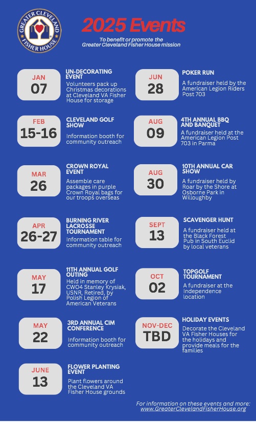 greaterclevelandfisherhouse.org, unless otherwise noted. And this event page is continuously updated with new events, so be sure to keep checking back.